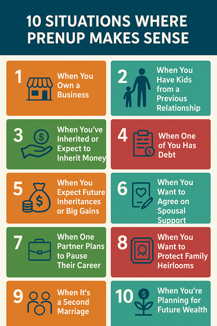 If you own property, run a business, or have investments before marriage, a prenup helps protect them. It also keeps personal inheritances or gifts separate, so they stay with the person they were meant for.